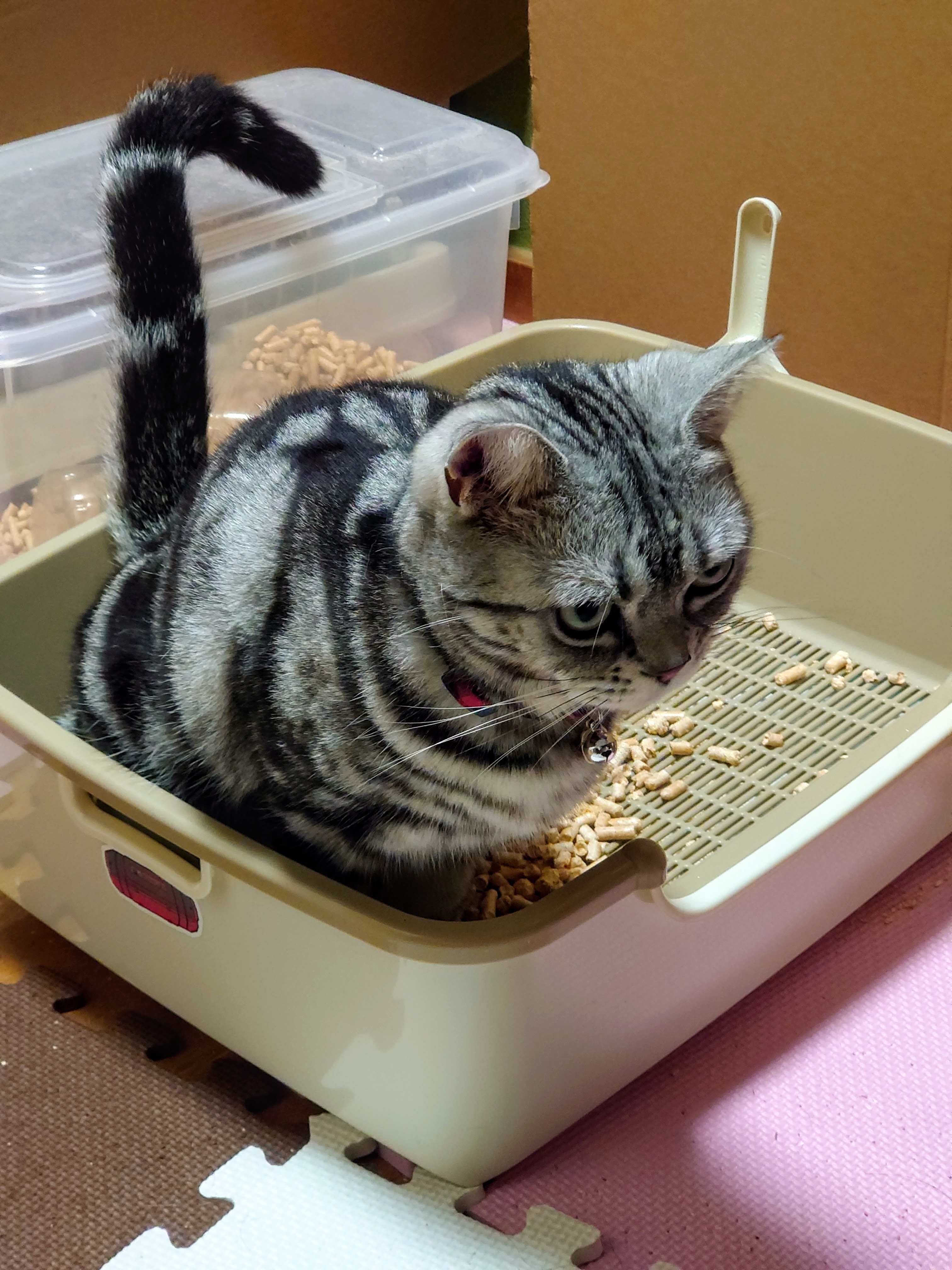 とても真剣な顔をしていますが、トイレにこもっているようです。