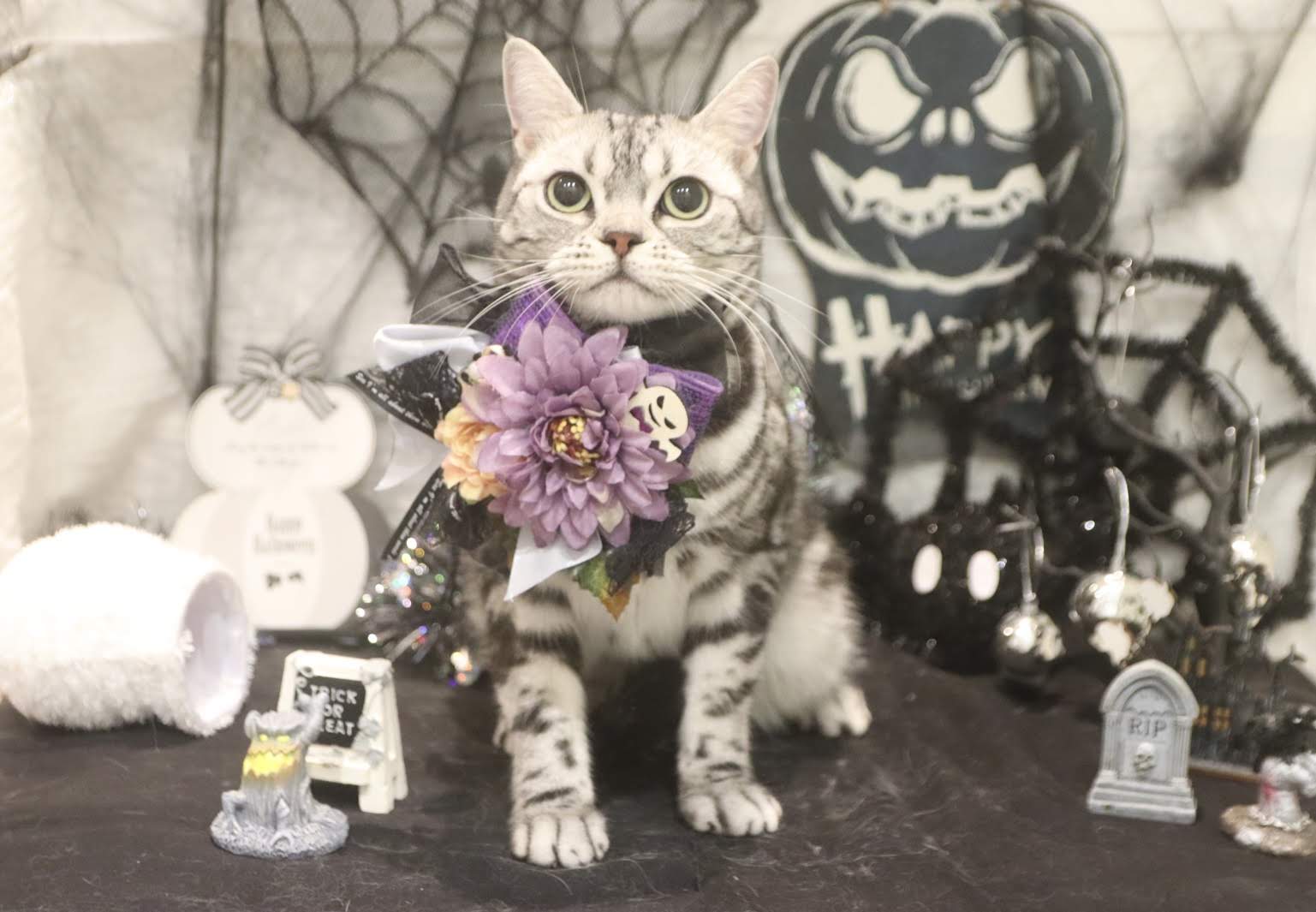 お世話になっているサロンでトリミングをしてもらいました。ハロウィンの背景とぴったりマッチしてイカしてるね。