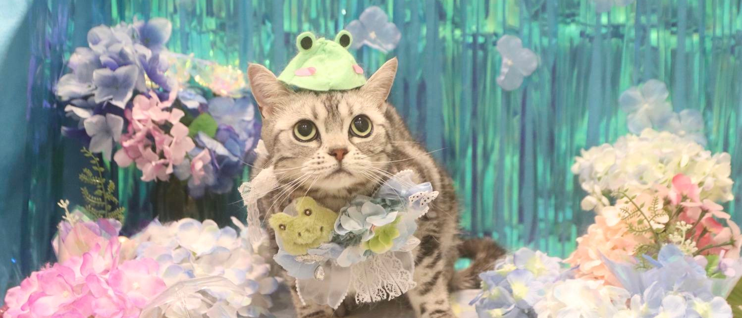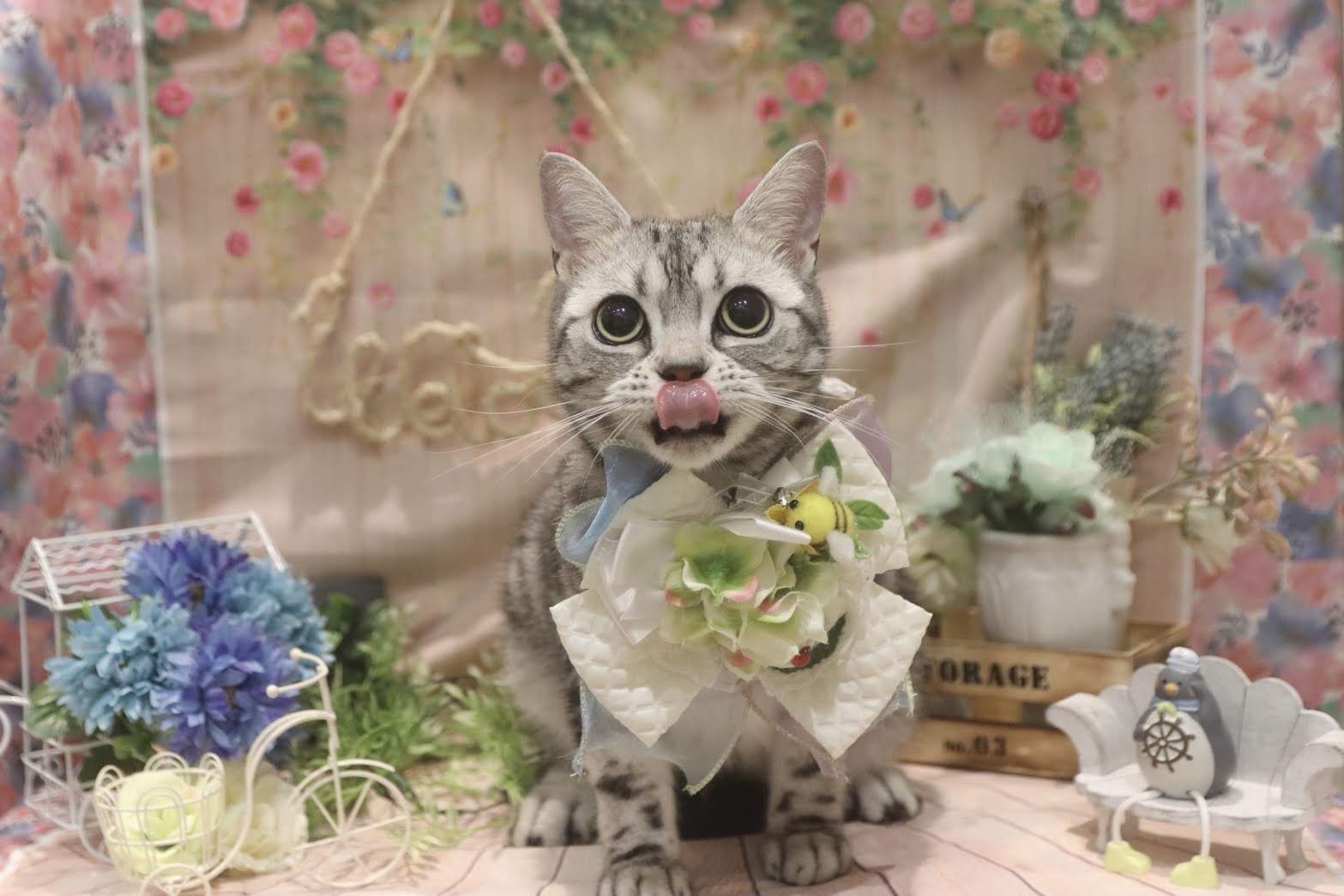 初夏の換毛期にサロンでトリミングをしてもらいました。スッキリしたあとはおめかしして写真を。